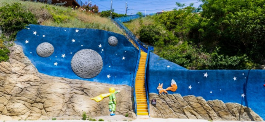 많은 벽화들 중 어린 왕자 콘셉트 포토존에서, 다양하게 디자인된