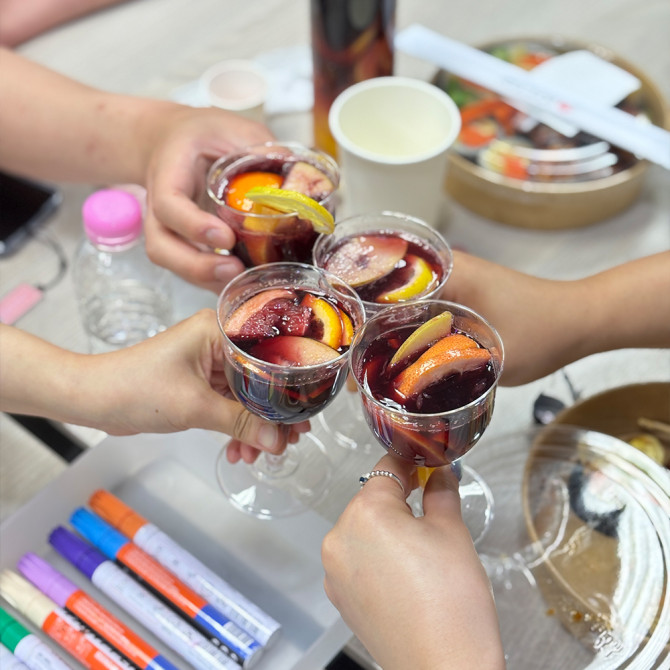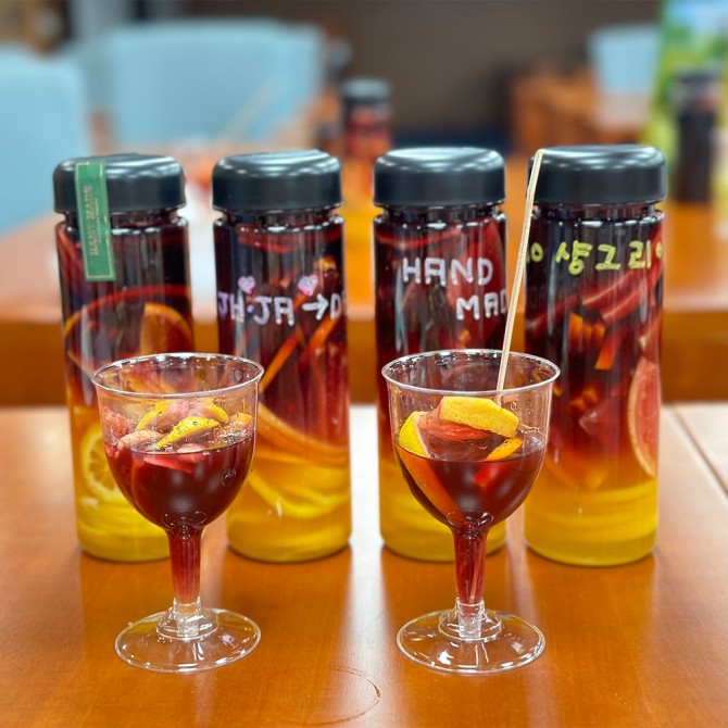 조별 글라스 1개, 상그리아용 보틀 인당 1개 - 와인, 칵테일 재료 - 일회용 도마, 칼, 일회용품 등 재료