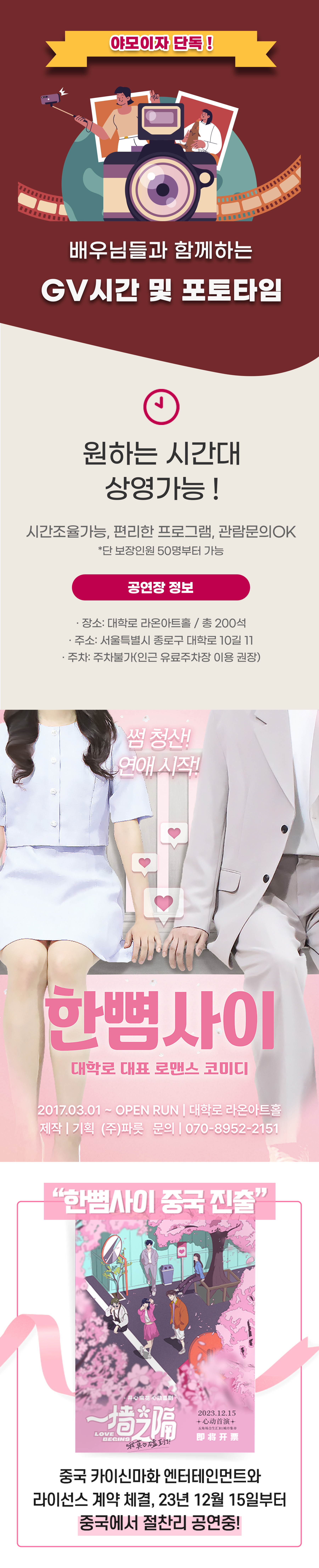 대학로 대표 로맨틱 코미디 연극  '한뼘사이'