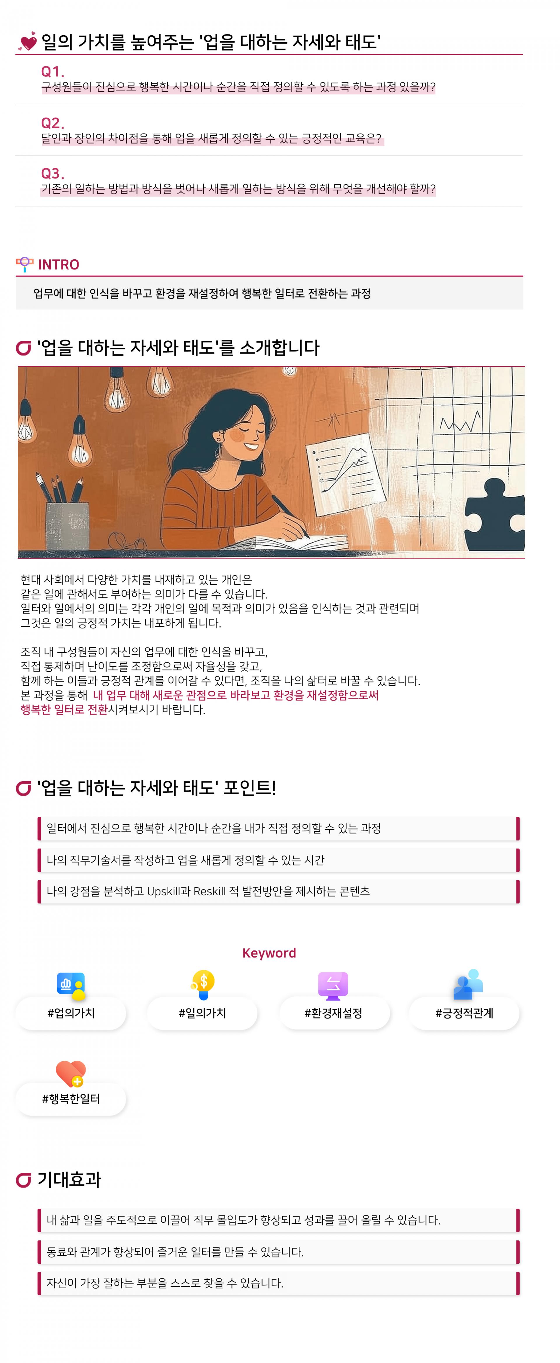 업무에 대한 인식을 바꾸고 환경을 재설정하여 행복한 일터로 전환하는 과정