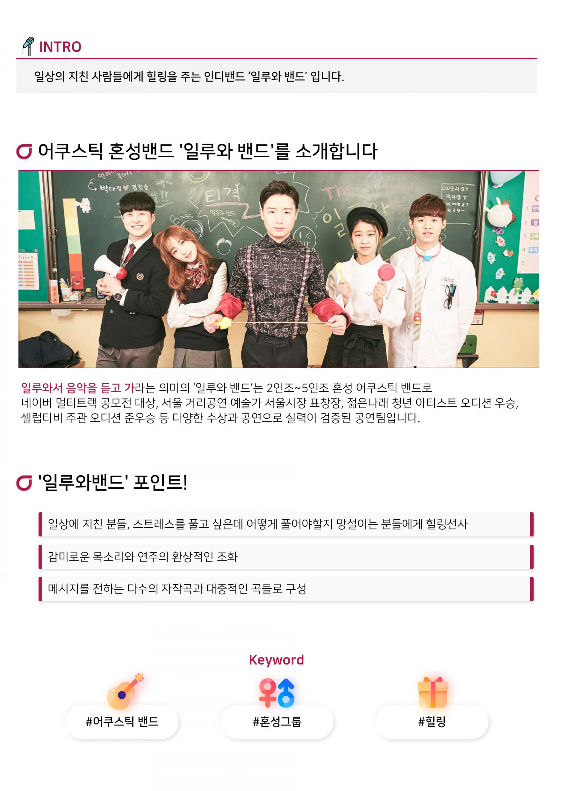 일상의 지친 사람들에게 힐링을 주는 인디밴드 ‘일루와 밴드’ 입니다.