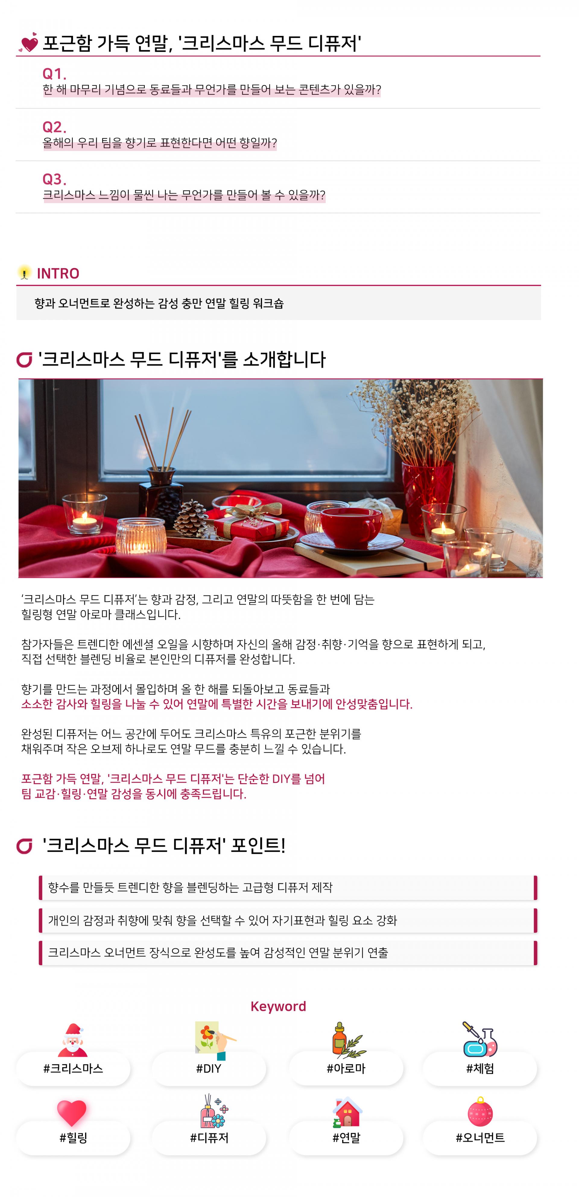 향과 오너먼트로 완성하는 감성 충만 연말 힐링 워크숍
