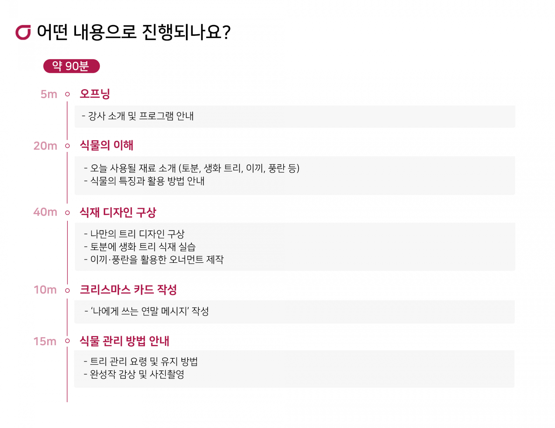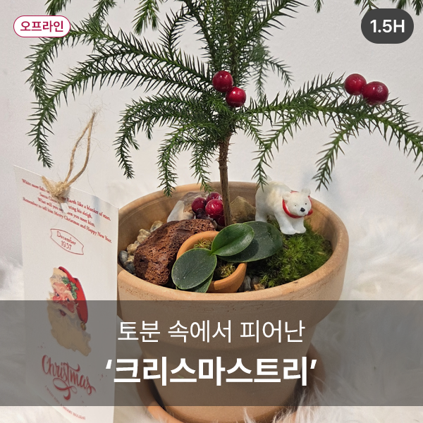 토분에 작은 트리를 심고 이끼·풍란 오너먼트로 완성하는 연말 힐링 클래스