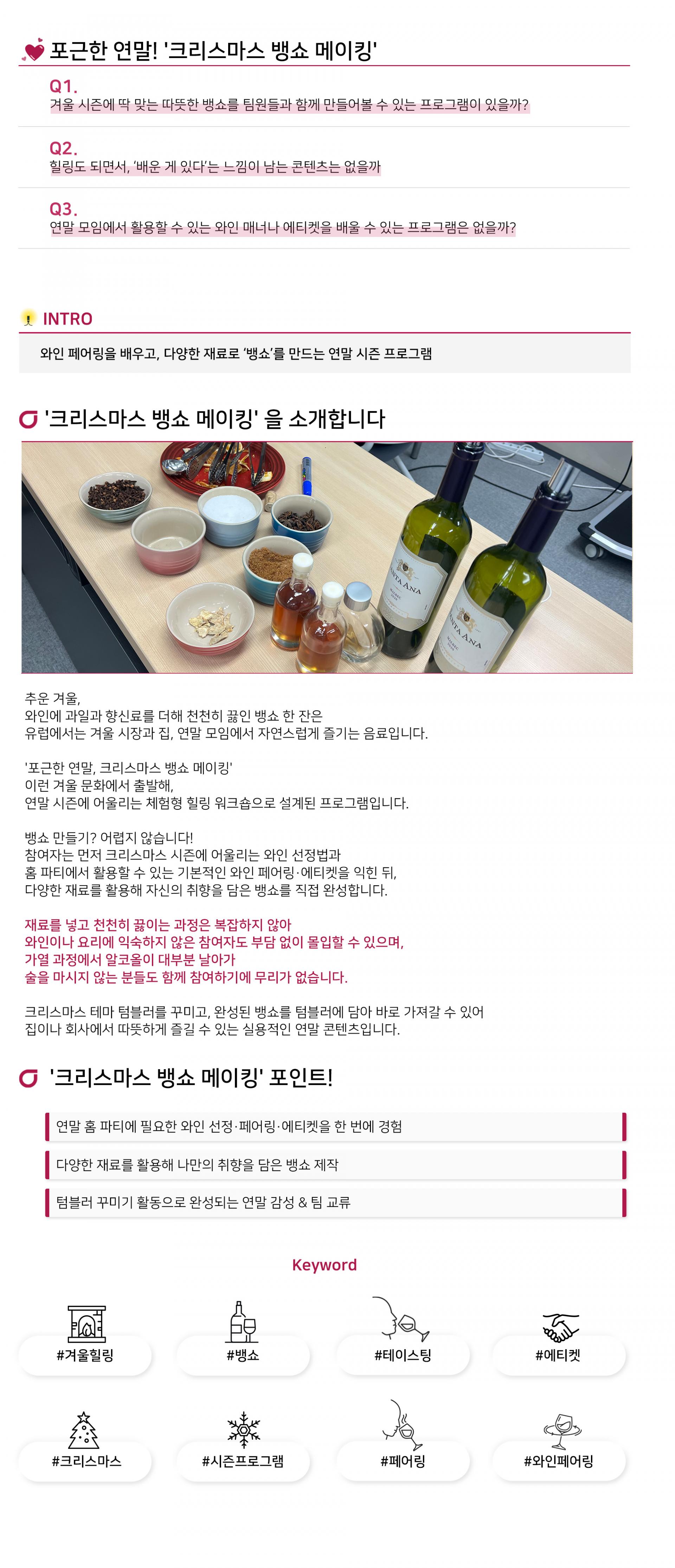 와인 페어링을 배우고, 다양한 재료로 ‘뱅쇼’를 만드는 연말 시즌 프로그램