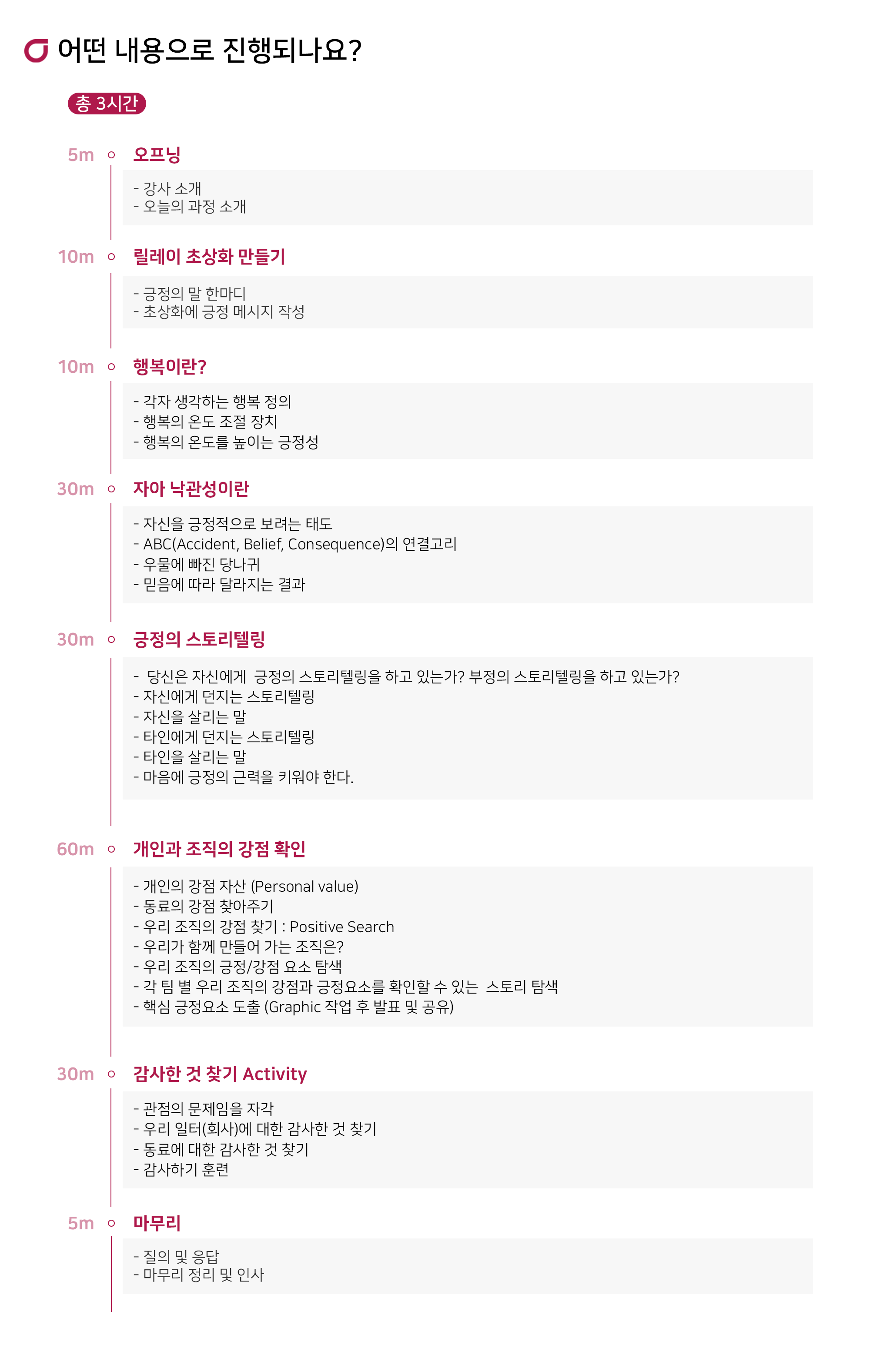 행복한 개인과 조직을 만들기 위해 필요한 요소를 찾는 시간