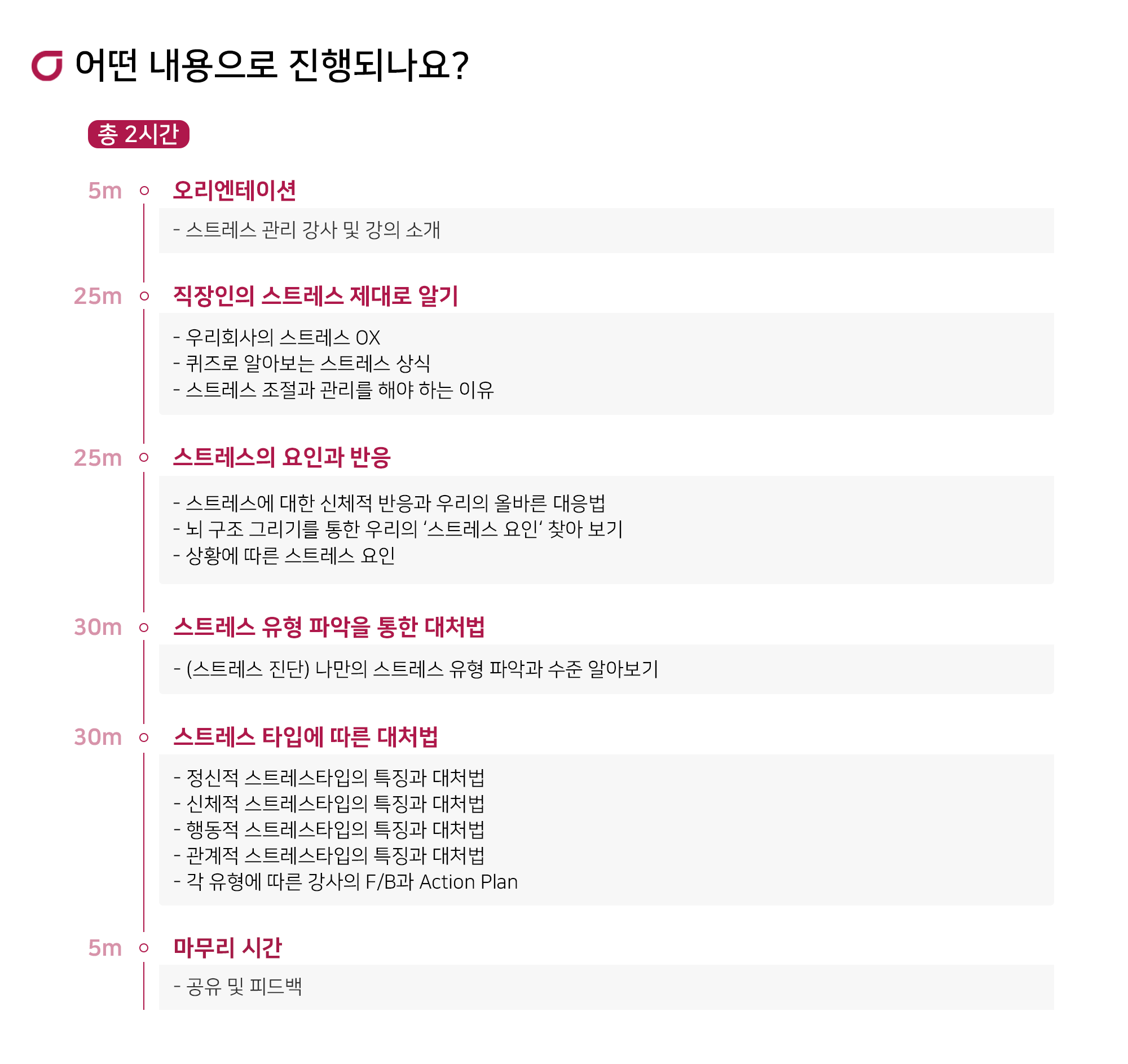 올바른 스트레스 대처법을 통해 신체균형과 마음관리 방법을 익히는 과정