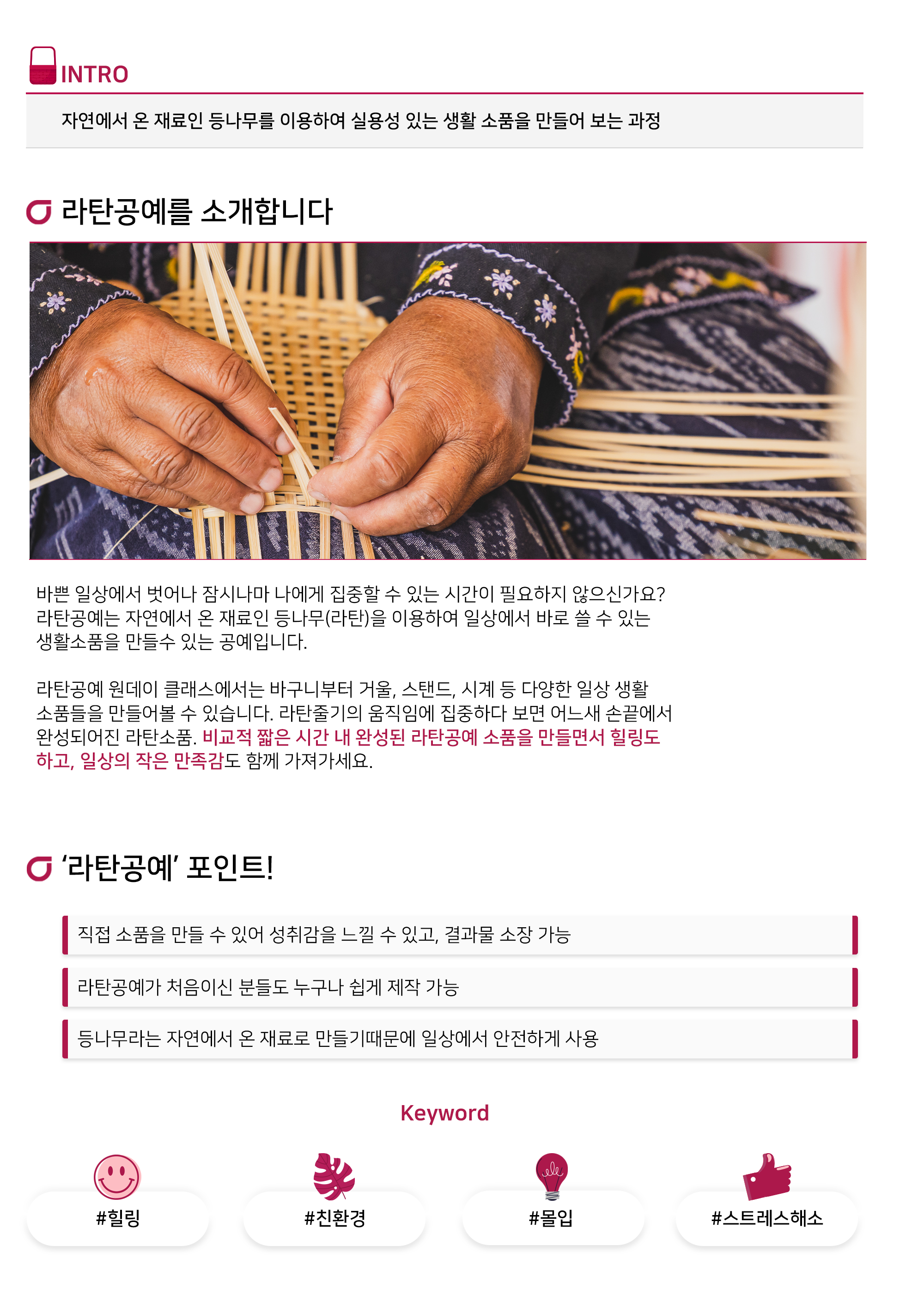 자연을 엮는 힐링의 시간 '라탄공예 채반 만들기'