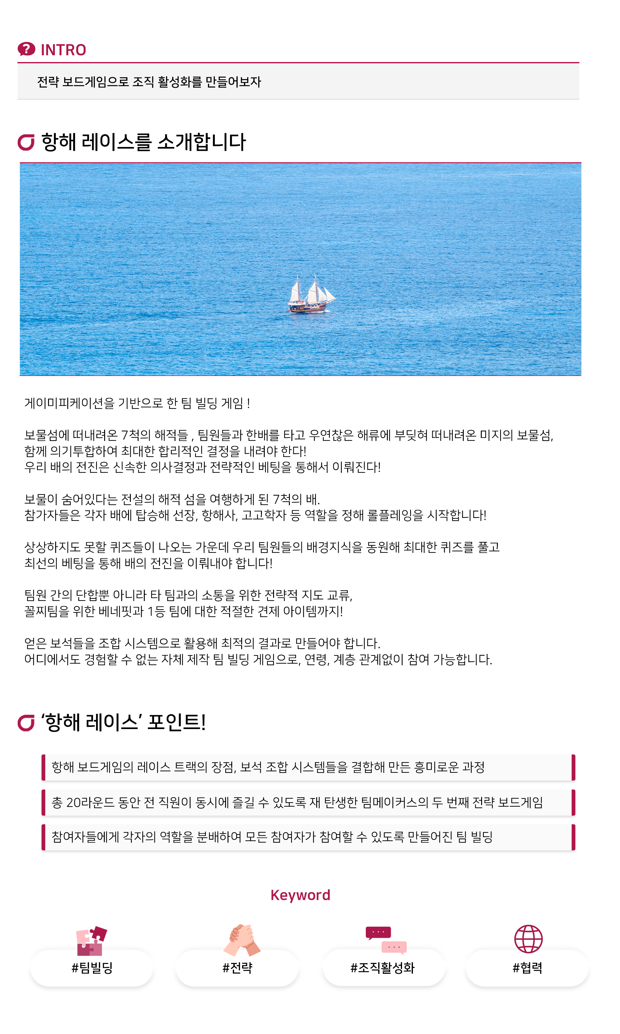 팀 빌딩 게임 '전략 항해 레이스'