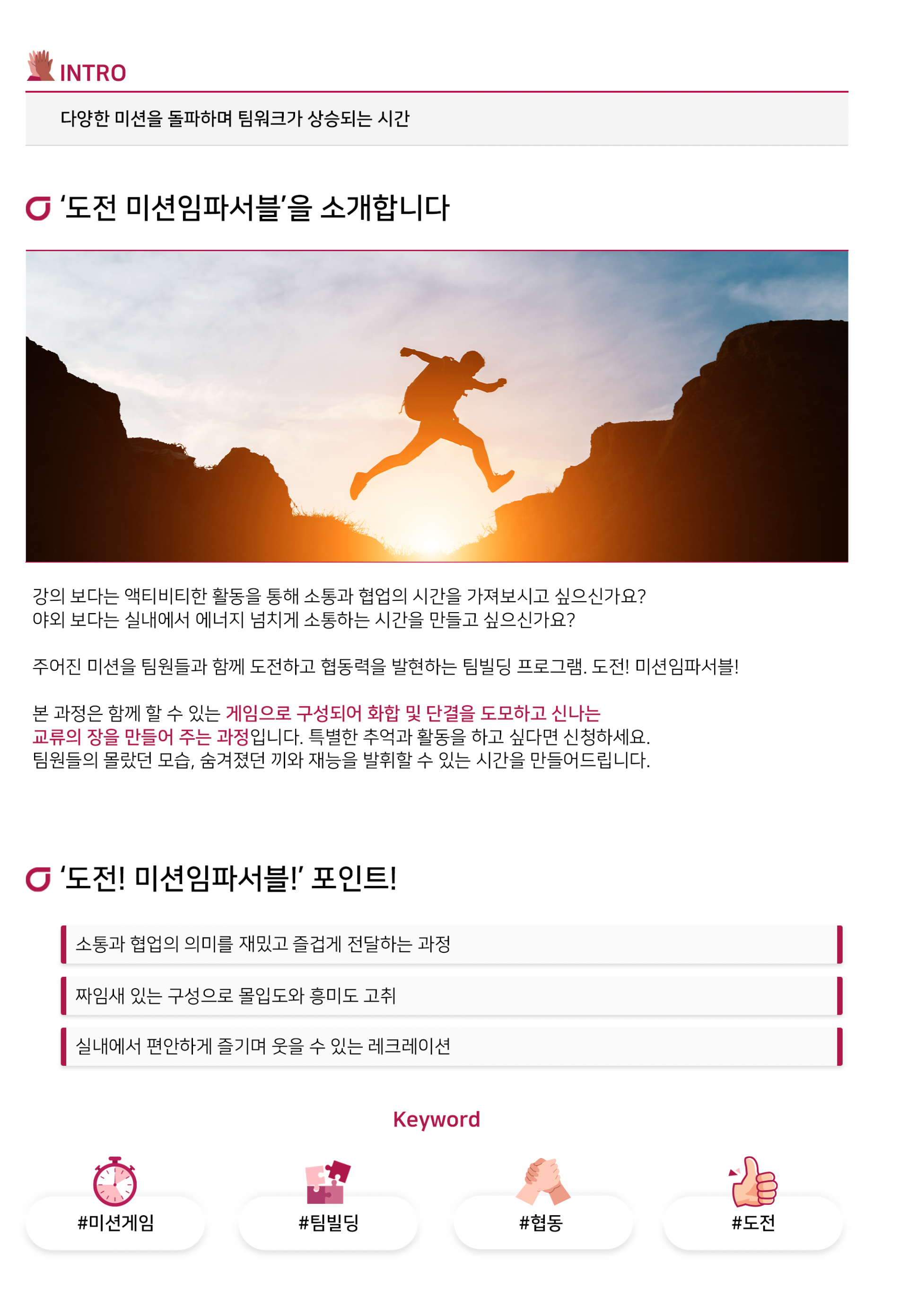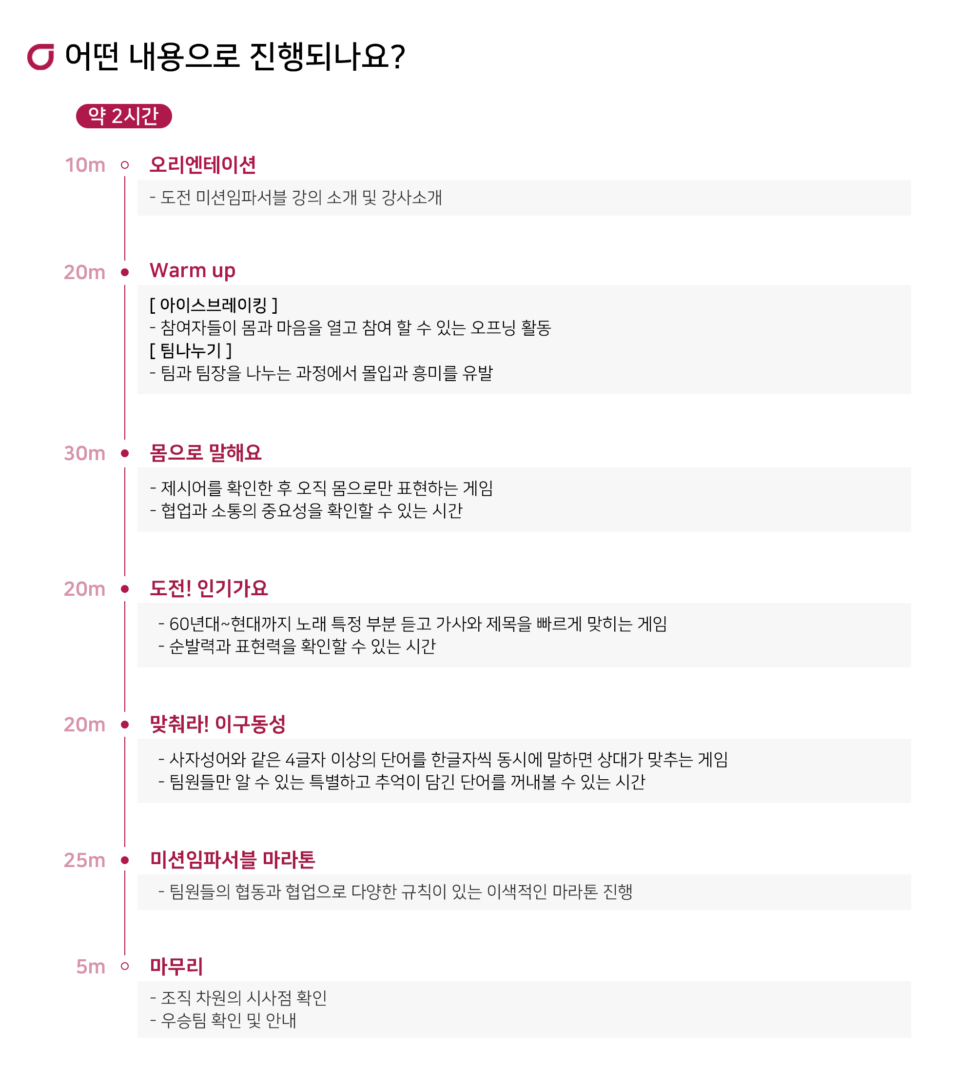 다양한 미션을 돌파하며 팀워크가 상승되는 시간