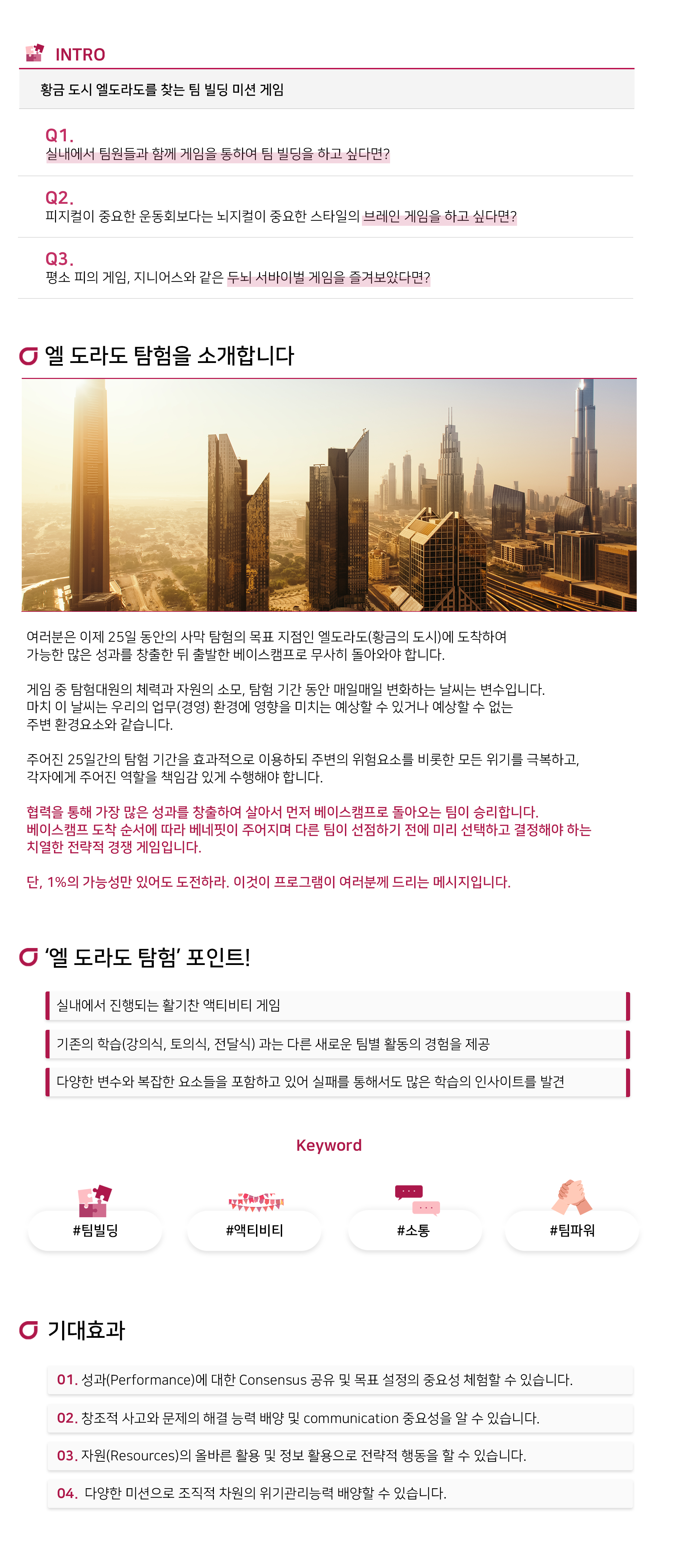 황금 도시 엘 도라도를 찾는 팀 빌딩 미션 게임