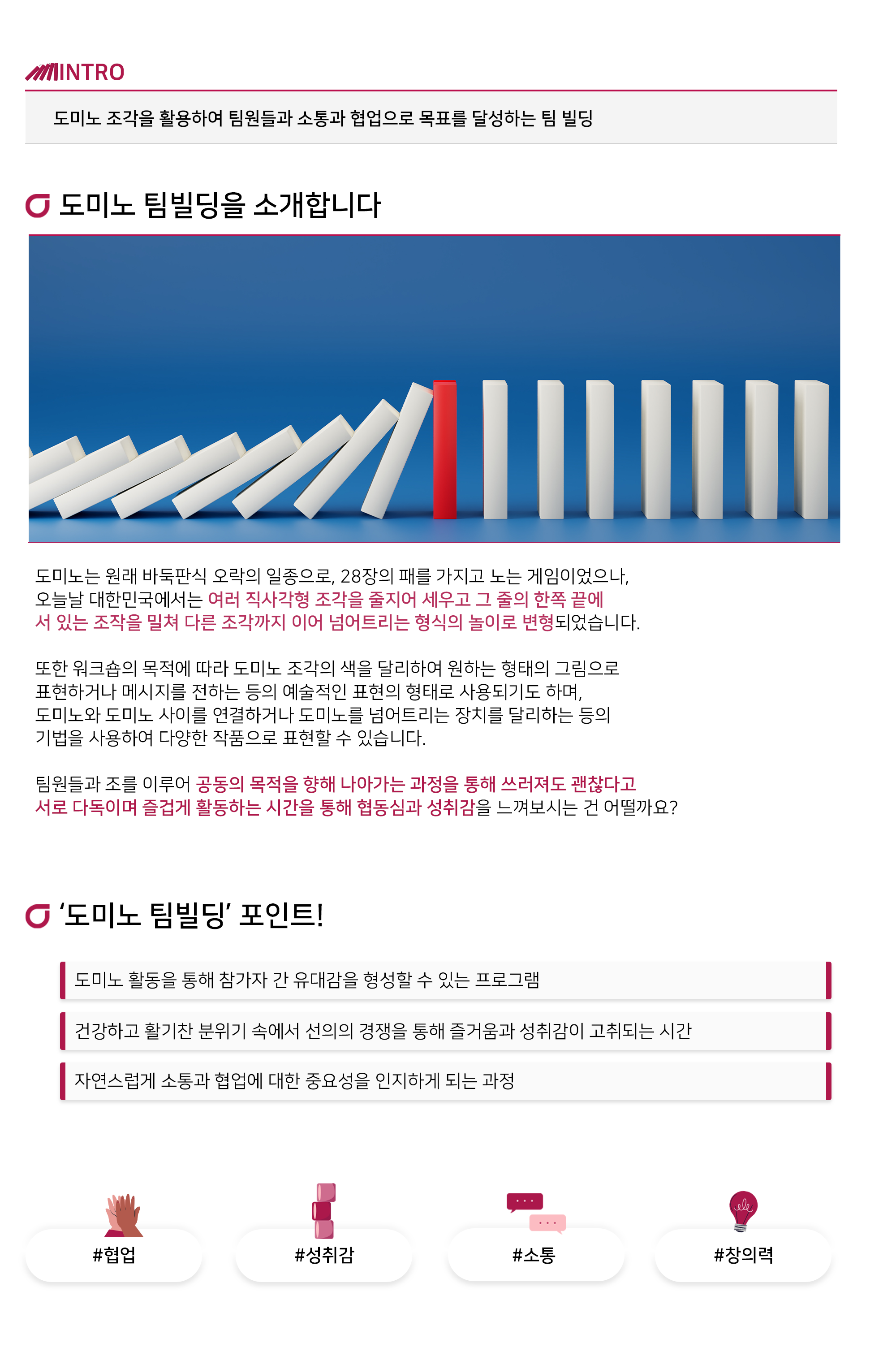 도미노 조각을 활용하여 팀원들과 소통과 협업으로 목표를 달성하는 팀 빌딩