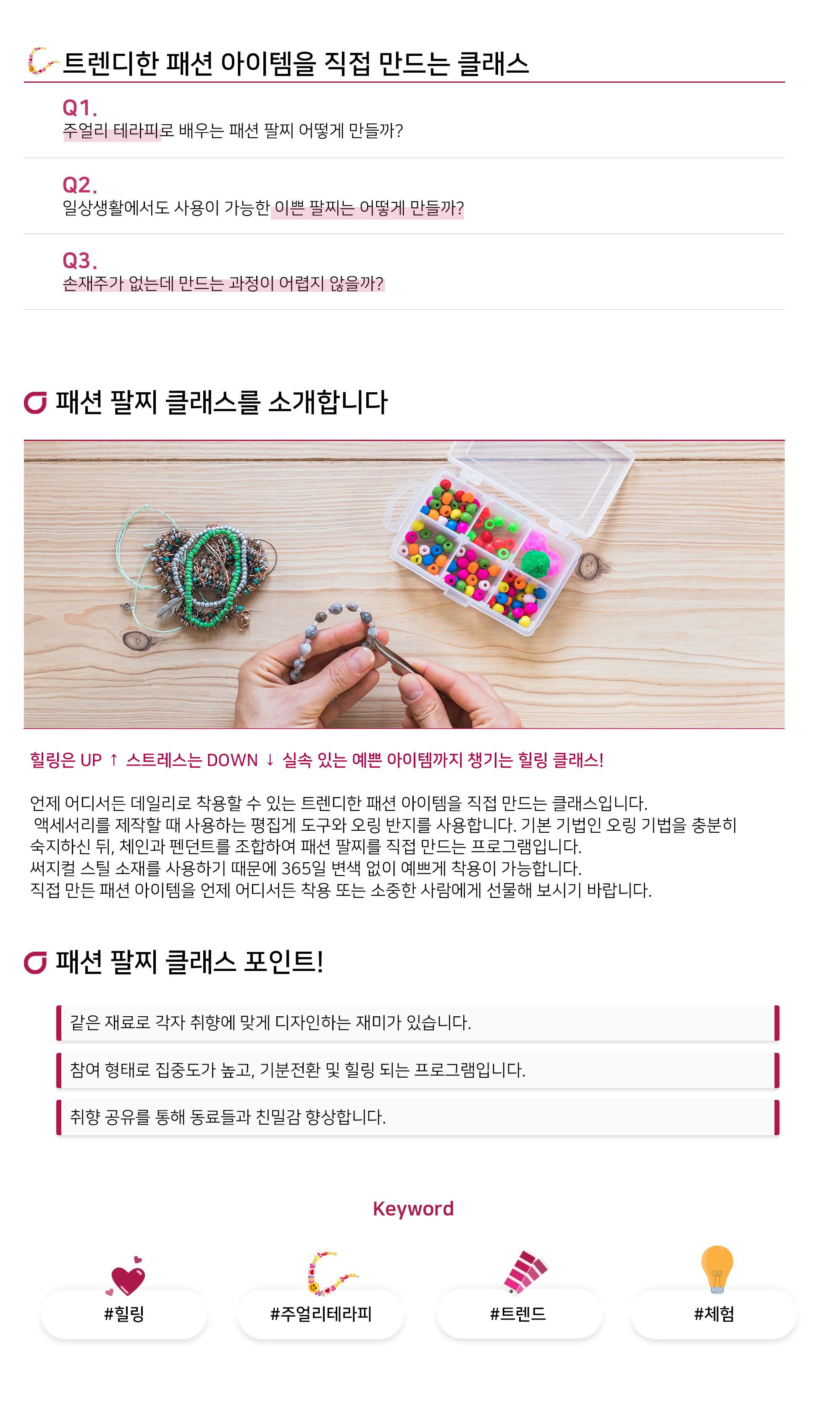 트렌디한 패션 아이템 클래스 '패션 팔찌 클래스'